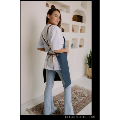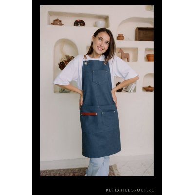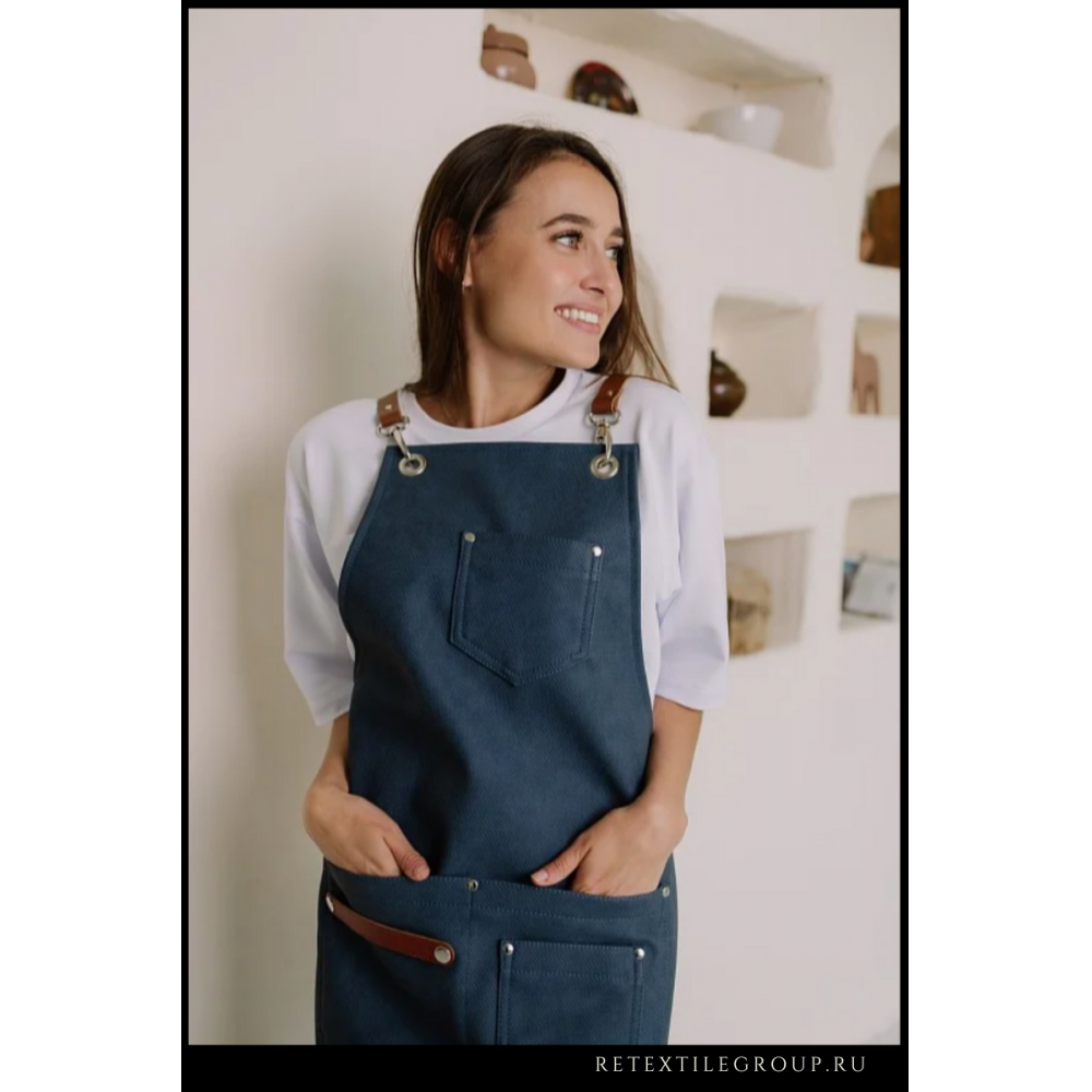 Практичный фартук из экокожи с двумя большими и двумя маленькими карманами.